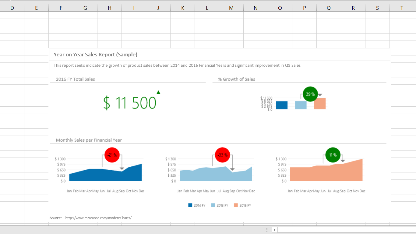 If you don't have enough time to present and you need to make your point as quickly as possible, you definitely will struggle using the chart above. This is where modernCharts Excel add-in comes in to assist. modernCharts can quickly take the same data set and do and: